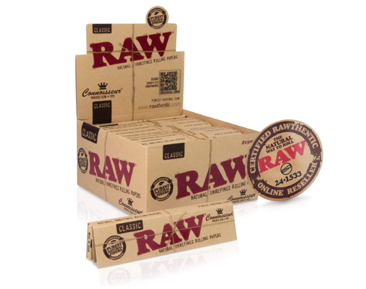 RAW CLASSIC CONNOESSEUR KINGSIZE SLIM+TIPS 24 PER BOX 24