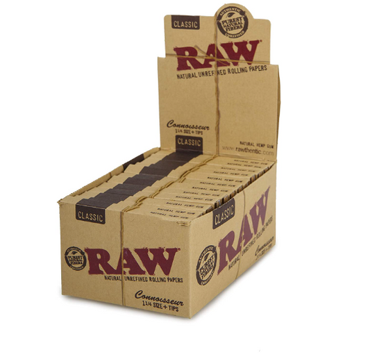 RAW CONNOIESSEUR CLASSIC 1 1/4+TIPS 24 PER BOX
